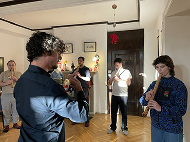 Marek Kimei Matvija przyjechał do nas z Pragi, żeby poprowadzić warsztaty gry na shakuhachi i koncertować (na zdjęciach z warsztatów widoczny jest też Paweł Szulik 尺八 shakuhachi - inicjator całego przedsięwzięcia).
